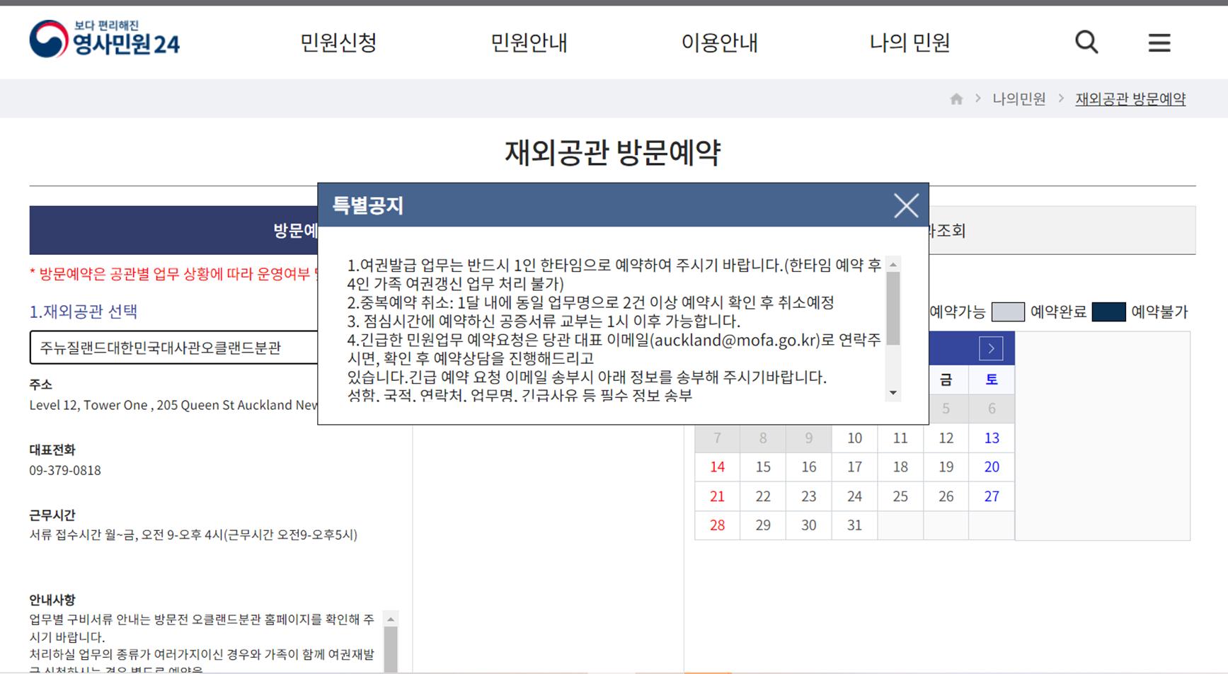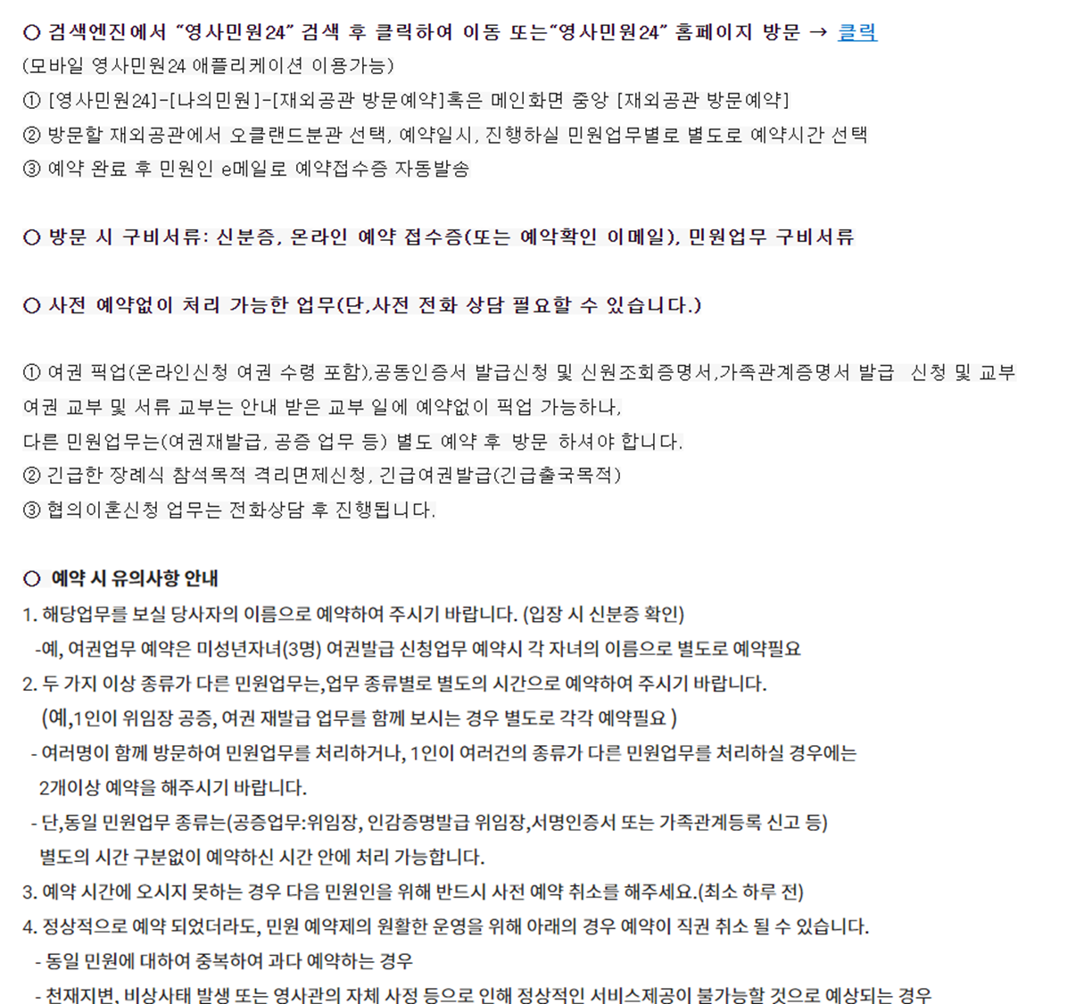 영사민원24에서 사전예약 한 후에 방문해야 하는데